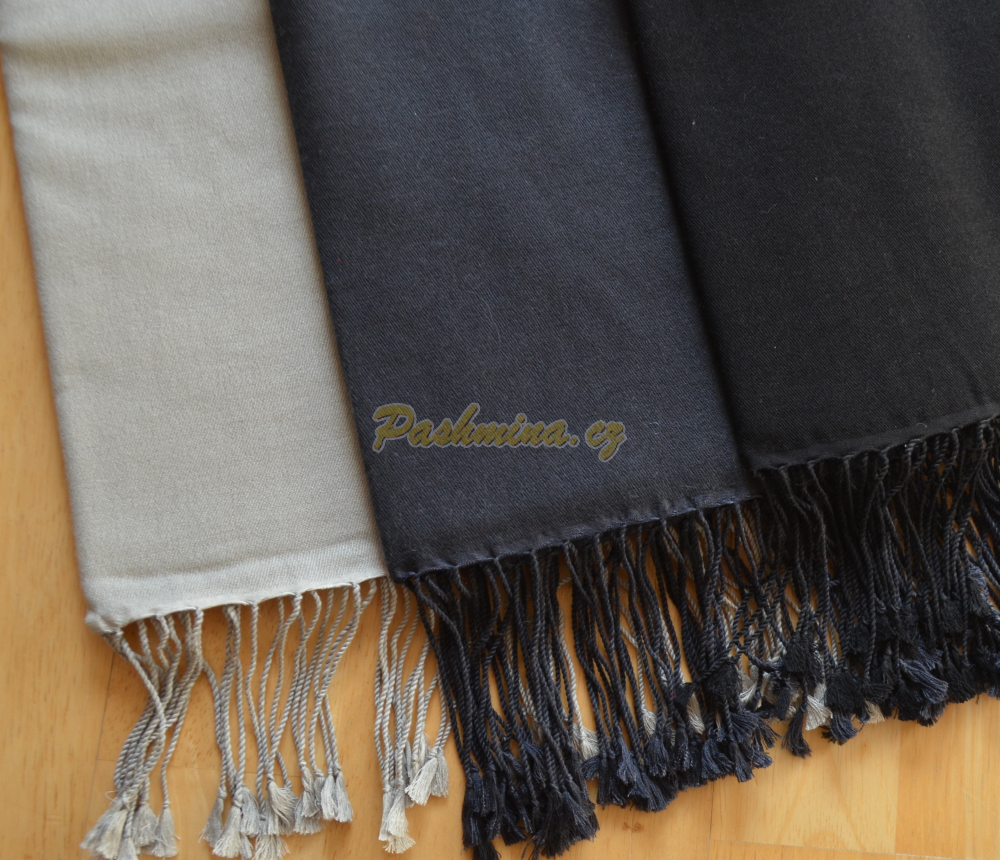 Klasické elegantní šály z hedvábné Pašmíny, jednobarevné, s jemným přírodním hedvábným leskem, zakončené lesklými kroucenými třásněmi s uzlíky. Vhodné pro dámy. Na kabát, ke kostýmu, společenským šatům, sportovnímu oděvu nebo jen tak na doma.