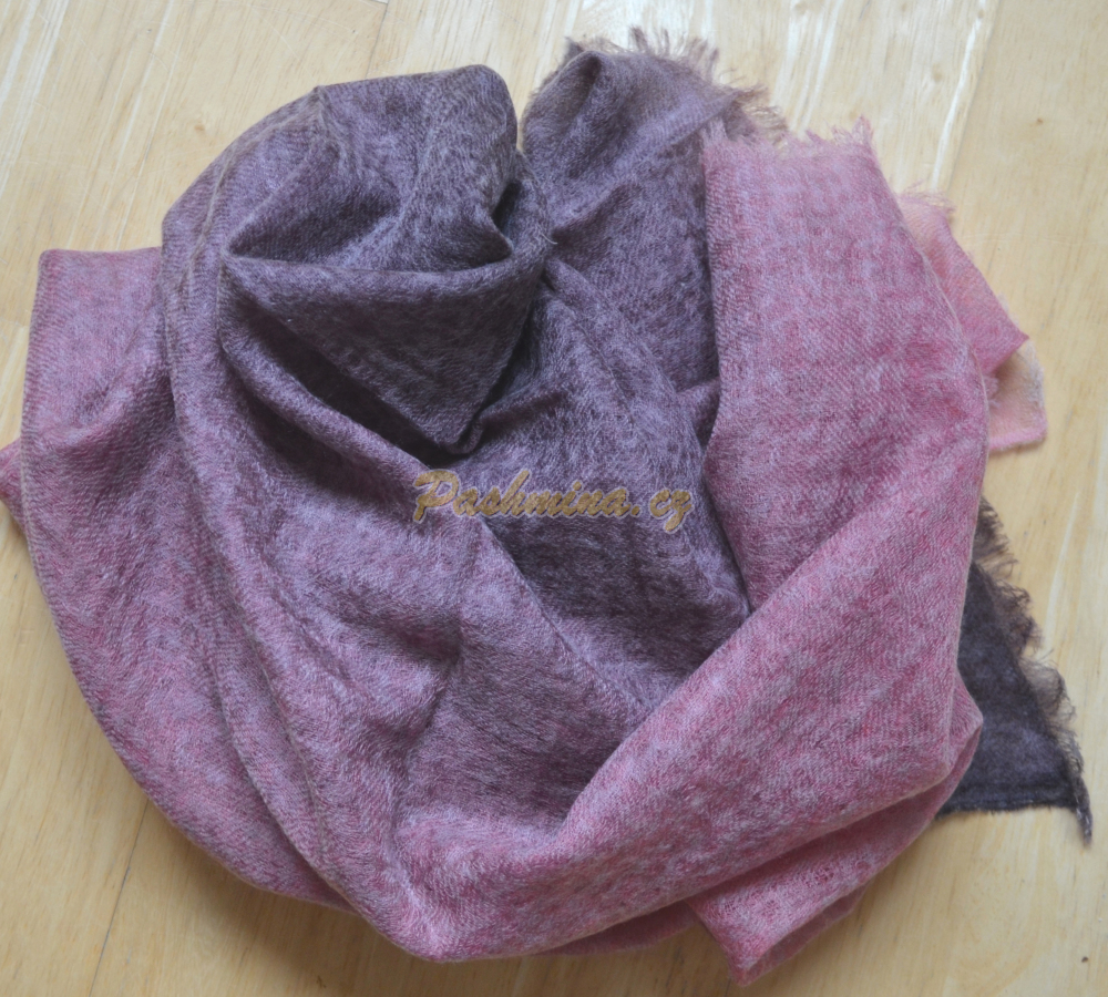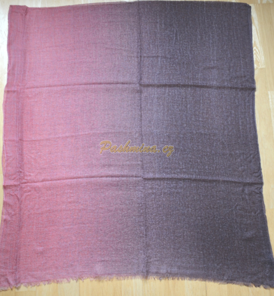 Originální šál z čistého kašmíru. Transparentní, vzdušně tkaný. Na kratších koncích ozdobený jemnými třásněmi typu "oční řasa". Váha pouhých 80 g!