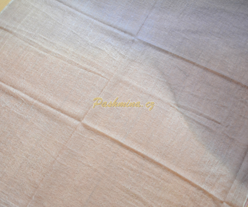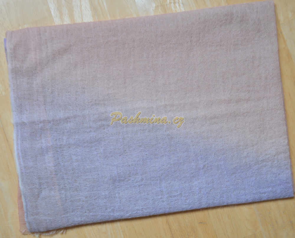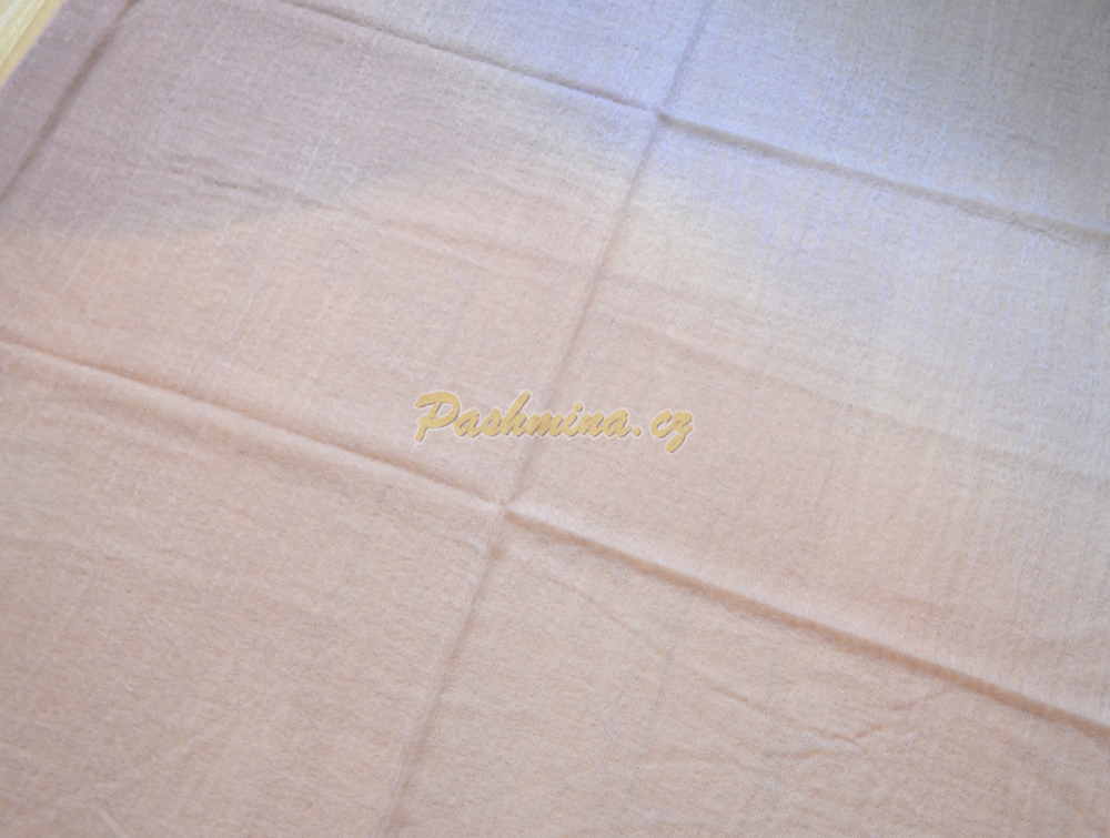 Vanilková, meruňková, světle modrofialová a tmavá šedofialová. To jsou barvy tohoto krásného, pastelově vybarveného šálu. Na jednom kraji je šál vanilkový. Směrem ke středu se šikmo přidávají barvy tmavší.