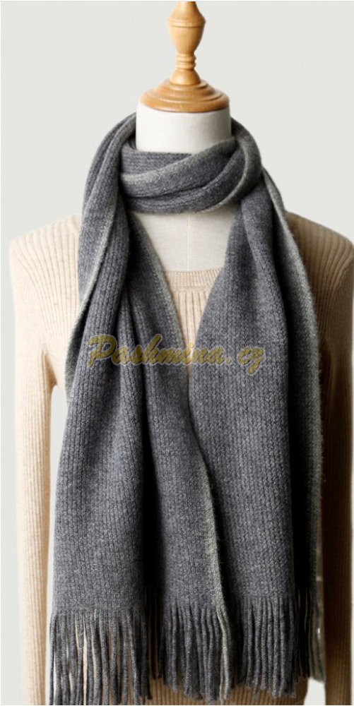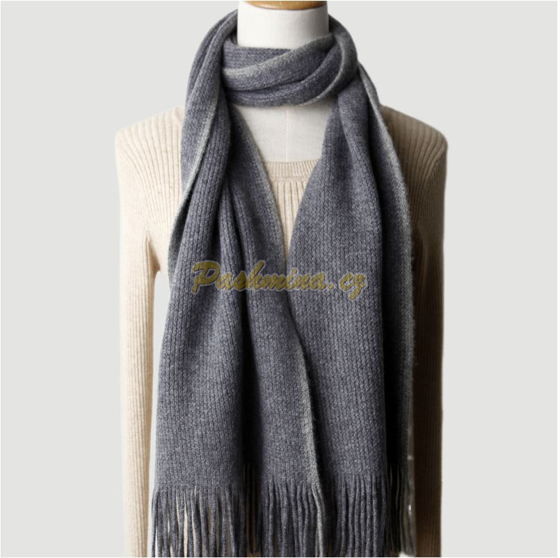 Lehká, silnější pletená šálka z čisté vlny (lamb wool) s kašmírem. Měkounká, hebká, s 10 cm dlouhými třásněmi. Vlna rychle odvádí vlhkost, rychle usychá. Výborně hřeje a snadno se udržuje. Skvělý oděvní doplněk pro dámy, pány či děti.