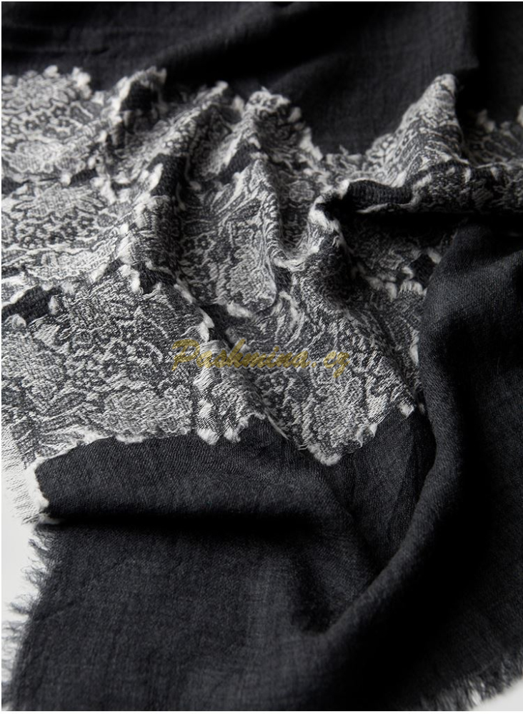 Šál z čisté vlny (lamb wool) s třásněmi ve stylu "oční řasy" po celém obvodu. Jemná, až transparentní, plasticky protkaná tkanina, váha úžasných 85 g! Příjemný, měkký.